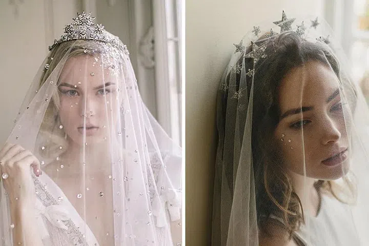 Cosmic-inspired details have been popular with weddings (like this starry themed ballroom wedding at The St. Regis Singapore) for a while - think galaxy cakes, crescent moon backdrops - and stars, in particular, have been appearing on wedding dresses and accessories alike. It's no wonder, too. They impart a whimsical and magical touch to any big day look.