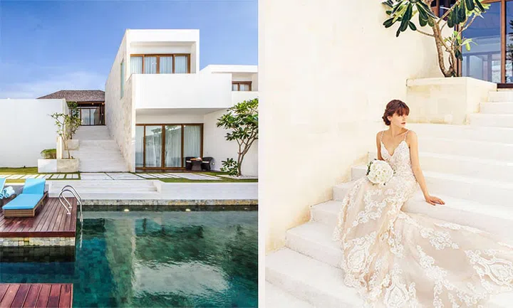 White-washed villas, like this Premier Three-Bedroom Villa, boast modern creature comforts, including private pools and open-concept living areas.