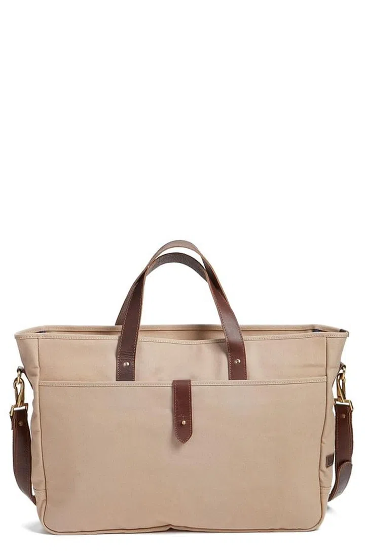 We love the use of brown leather straps on this ivory laptop bag. It’s simple yet roomy enough for your laptops, iPads and your other knick-knacks.