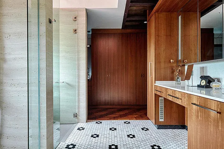Swapping the usual wooden or bi-fold doors for louvre ones lend a classy, resort-ish appeal to your bathroom.