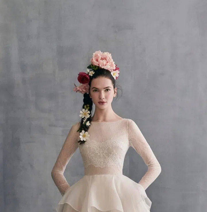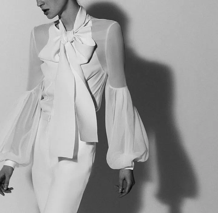 Rocking pants for your wedding or ROM can look just as feminine and elegant. Take this Carolina Herrera piece with sheer flowing sleeves and a pussy bows for instance.