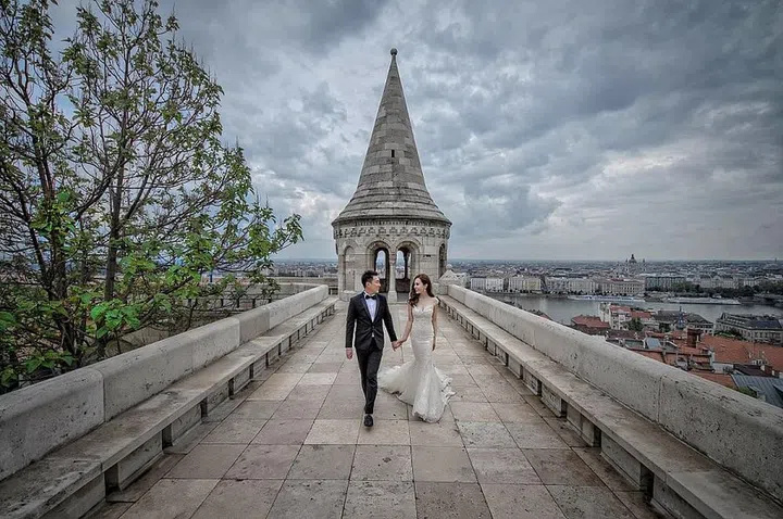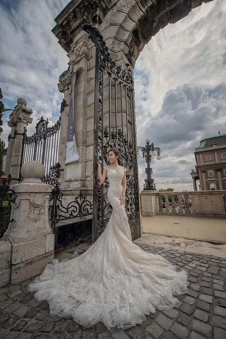 Ornate gates, wide pavilions, historical castles and their towers in Budapest, Hungary, set the scene for Wang Wan Ting and Andy Lim's grand portraits.
