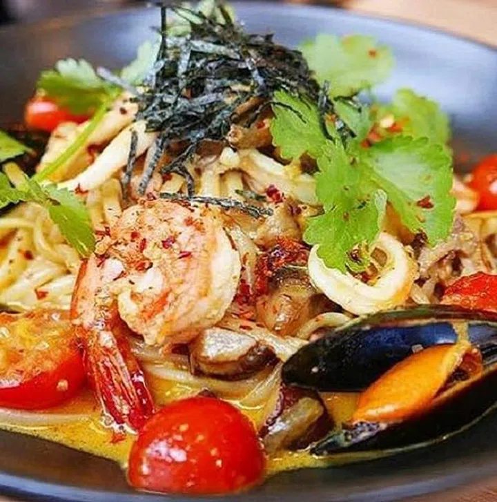 Pastas and burgers make up most of the dinner menu here, but there's still tons of choices, from the Nacho Libre burger exploding with Mexican flavours to the Asian-inspired Tom Yum Seafood Pasta (pictured).