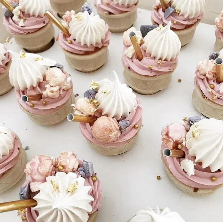 Cupcakes, ice-cream cones and meringue all in this beaute of a dessert! The ice-cream cone definitely makes for a good alternative to the usual cupcake holder.