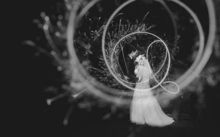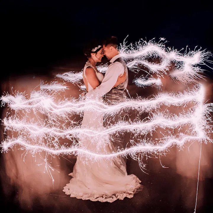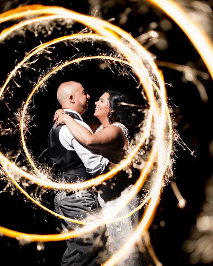Create a depth-of-field focus using the sparklers as fillers to bring the focal point to you and your groom - in a creative and magical way!