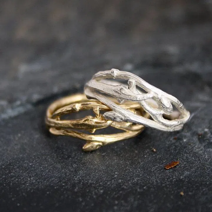For the couple in love with fantasy, this pair of twig-inspired bands are perfect. Photo: Pinterest