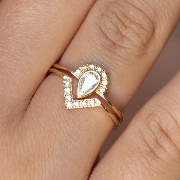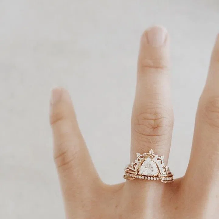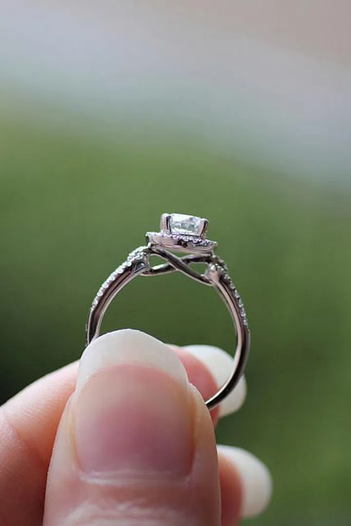 When buying your engagement ring, keep in mind the type of wedding band you want to have too, so you don't end up with designs that clash. Photo: Pinterest
