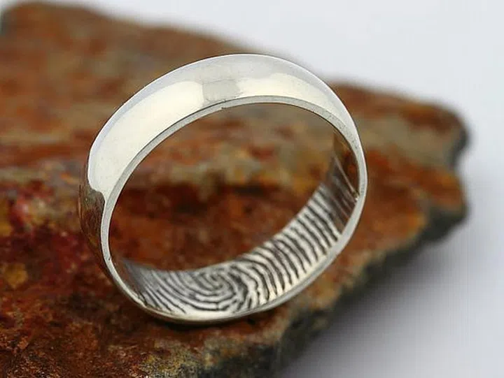 Who needs engraved messages, names and dates, when you've got your thumbprints etched on each other's bands? Photo: Pinterest