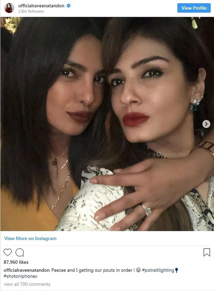 Earlier in the week, Bollywood actress Raveena Tandon may have given us a glimpse of Priyanka's engagement ring (the one Nick shut down a Tiffany & Co store for).