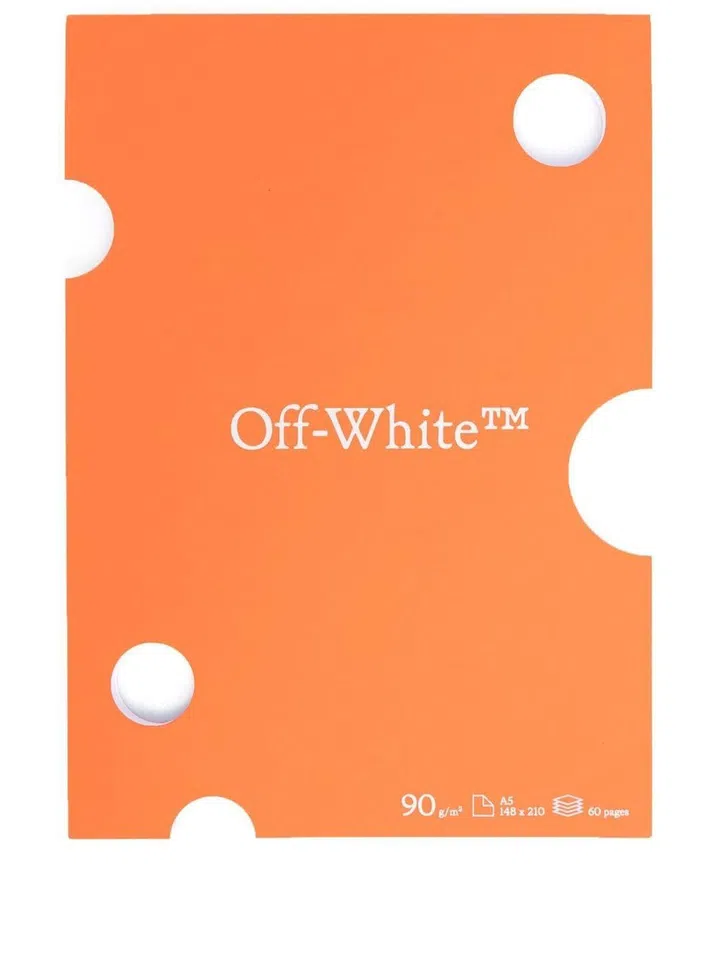 Get inspired to jot down your ideas or journal in style with Off-White's unique notepad. Designed in a striking orange tone and featuring cut-out detailing resembling holes from meteoric destruction, this fresh white notepad is both edgy and functional. Its sleek and modern design makes it the perfect addition to any workspace or study area.