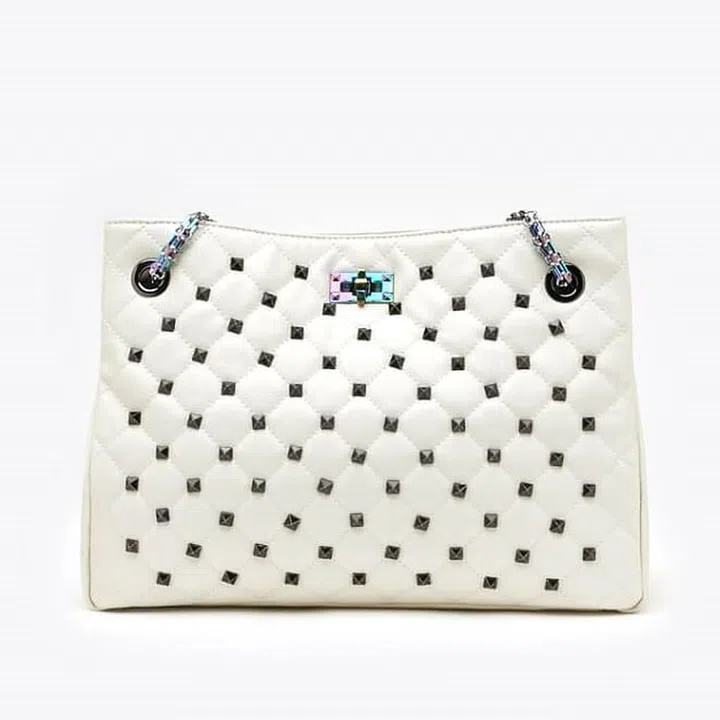 This studded quilted design is for those who want a little more edge and cool factor despite the all-white colourway. Complete the look with a sharp suit and pointed heels.
