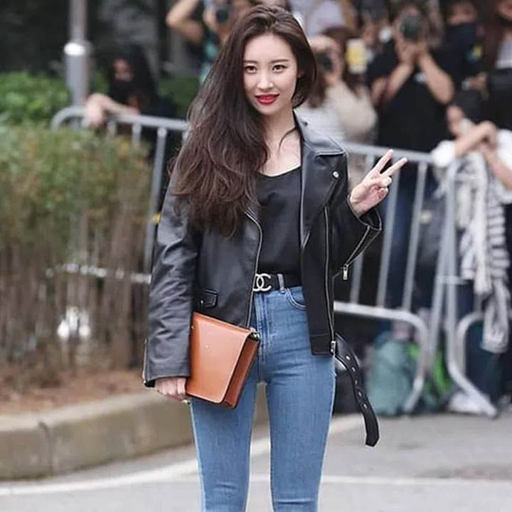 Say you woke up late and you’re rushing to catch your flight before the gate closes. There’s no reason why you still can’t look on point. Just throw on a grungy leather jacket like Sunmi and you’re good to go. But we suggest opting for low-cut shoes to avoid the hassle of getting in and out of high-cut boots at immigration.