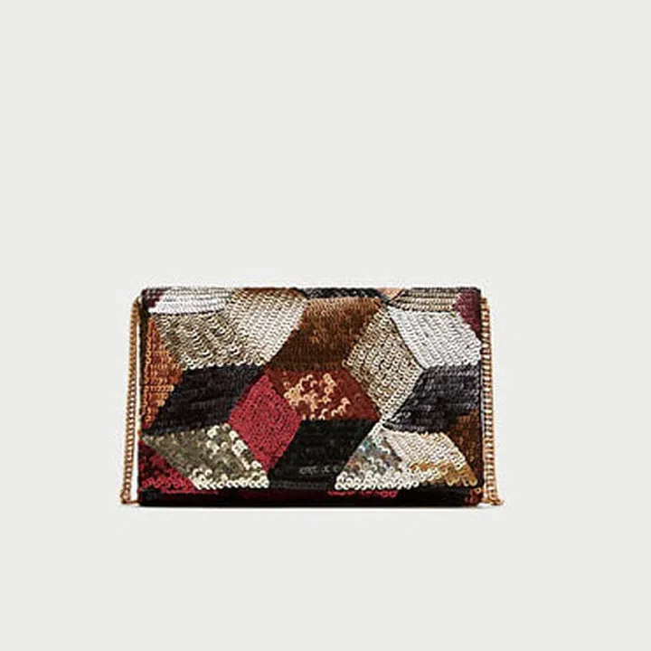 This clutch is the true epitome of ‘technicoloured magic’. We especially love how it’s plastered in regal-coloured sequins; it practically looks like a work of art.