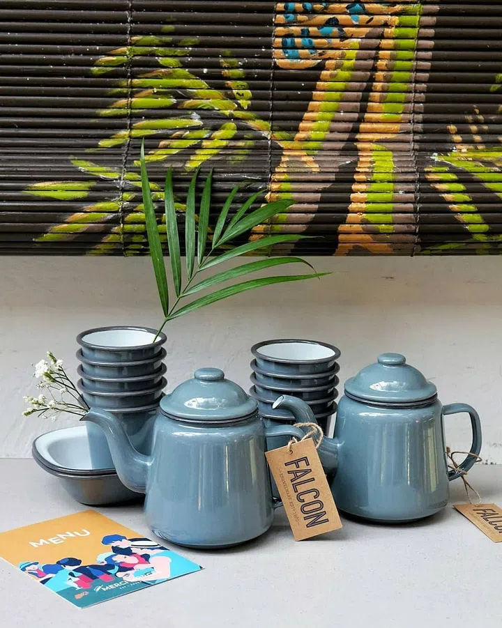 Get flatlay ready with Falcon’s beautiful yet functional chic tableware made from traditional and resistant enamel with a timeless elegance. It adds a touch of je ne sais quoi to the dining table.