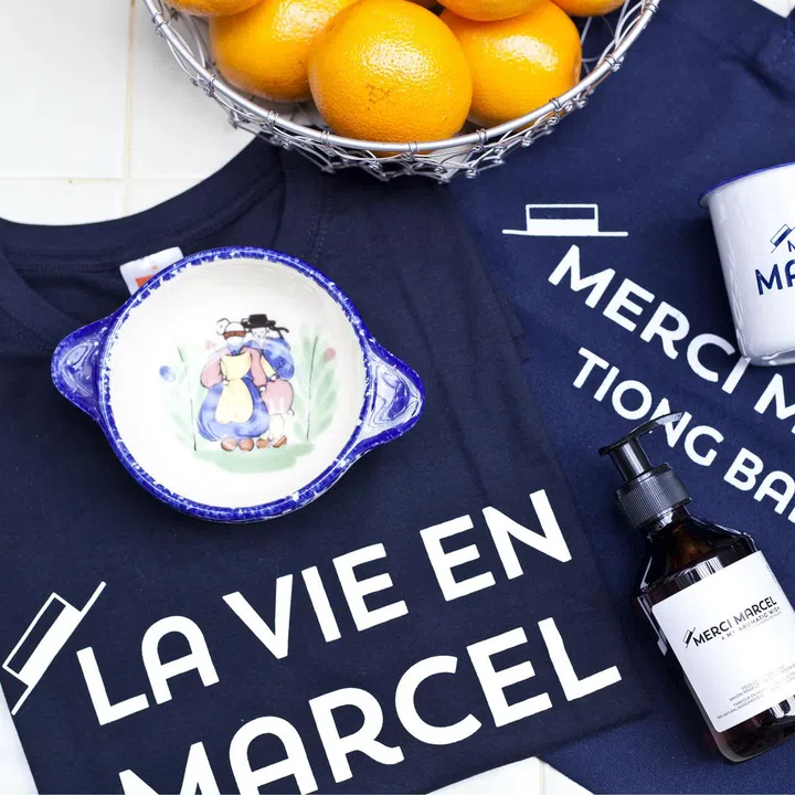 Merci Marcel was conceptualised to focus on championing independent gourmet and lifestyle brands, art and culture. And what better way to champion the indie scene and innovation than by creating an epynomous capsule collection. This includes a cotton Tote bag, traditional Singapore enamel mug, traditional French Breton bowl with handcrafted personalisation, and t-shirt with the words “La Vie En Marcel”.