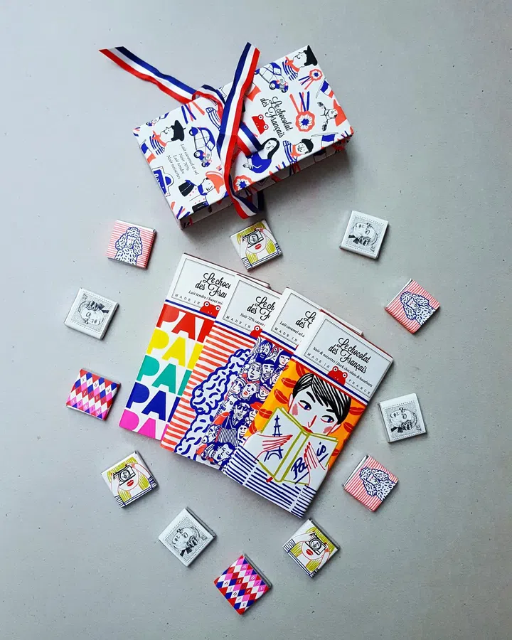 Pure cocoa chocolate tablets by Le chocolat des Français is literally made in France. Wrapped in playful and quirky packaging, the designs are by French illustrators such as Laura Junger and Josh Cochran. Flavours range from dark chocolate to salty caramel, but keep your peepers peeled for seasonal goodies.