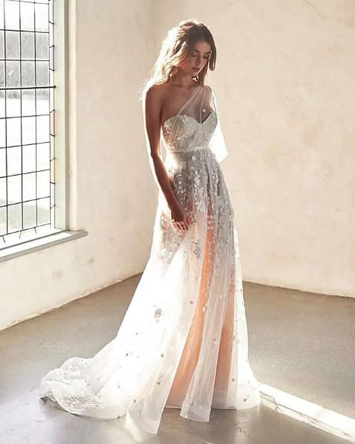 Brides can expect a mix of minimalist styles as well as exquisitely beaded creations exuding sleek sophistication.