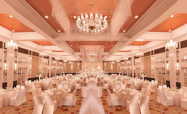 Its Crystal Ballroom's luxurious settings with a rich colour scheme, sparkling chandeliers, mirrored walls and elegant furnishings, provide a stylish and luxe setting for grand Malay weddings.