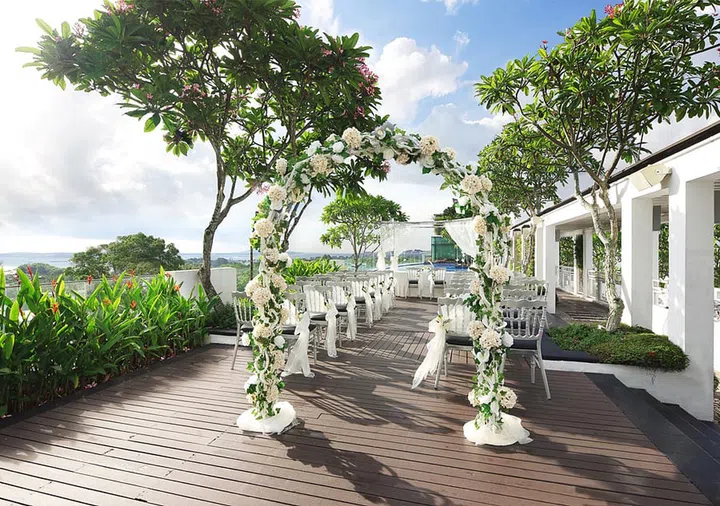 For a venue with a view blue skies and the sea , check out the area at the rooftop located at level 8 of the hotel for solemnisation ceremonies and intimate banquets.