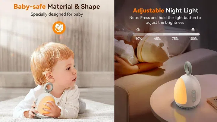 The Dreamegg Baby Sound Machine is an all-in-one baby sound machine, sleep soother, and night light.