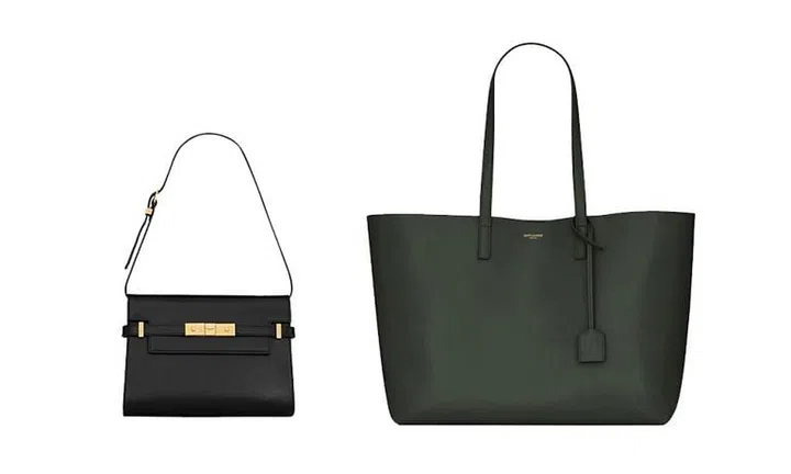 Saint Laurent by Anthony Vaccarello Manhattan leather shoulder bag, $3,390, and leather tote, $1,690, Saint Laurent