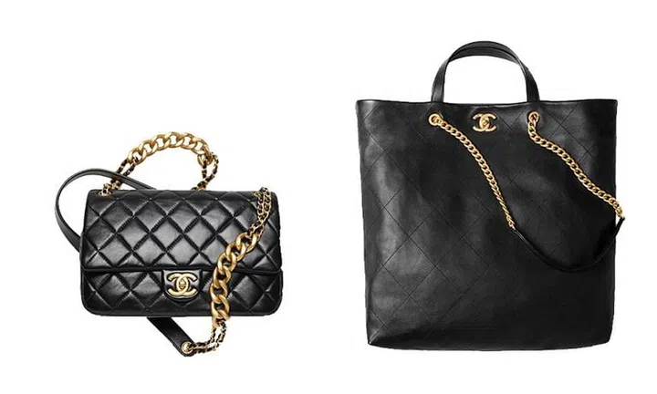 It’s very simple in theory: a large tote paired with a boxy shoulder bag. There are options aplenty for both those categories. But you might want to be guided in your choices by easy combinations and contrasts: smooth versus textured, glossy versus matte, slouchy versus structured, matching materials and colour tones, and so on.