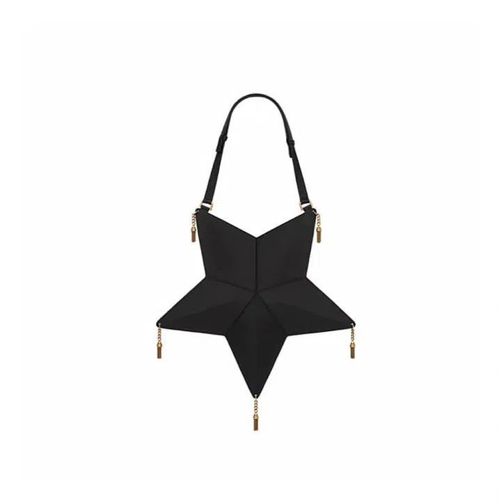Known for its sleek and simple soft leather bags, Saint Laurent’s new Astro shoulder bag is its quirkiest bag design yet. Shaped like a five-point star adorned with small dangling gold hardware tassels, the Astro is a playful, geometrically-designed bag that adds a funky factor your outfit.