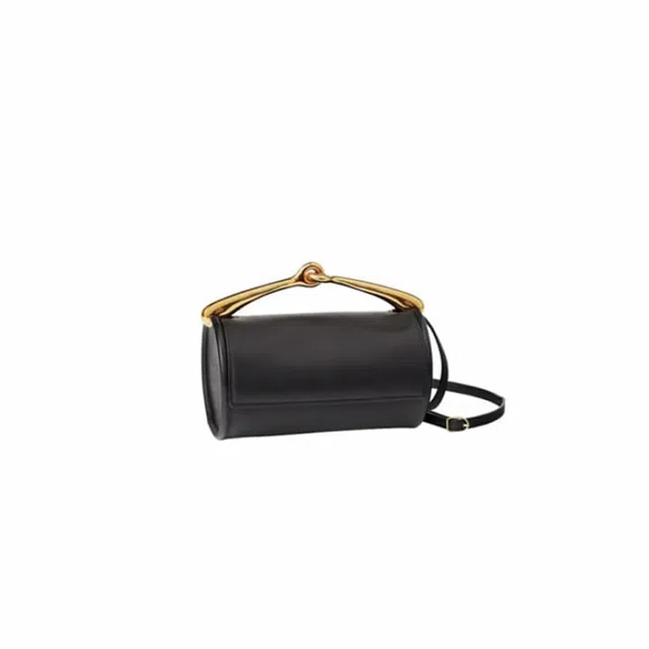 The Maximors is a graceful, cylindrical silhouette, made of shiny calfskin whose sheen switches from a dark brown to black in the sunlight, with a minimalist magnetic flap. The best part? The gold-coloured metal handle, almost sculptural in nature and interlocking at the centre. For a hands-free look, a thin leather strap is also attached to the bag to be worn crossbody.
