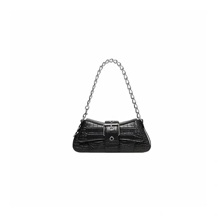 New for Fall 2022, the trapezoidal Lindsay bag is an amalgamation of creative director Demna’s vision to produce a ’90s-inspired line with a modern take. As a nod to large-buckled purses from the era, the structured pochette-style Lindsay is fastened with a chunky belt. The Lindsay comes with a short silver chain strap and a longer leather one for crossbody and is available in S, M and L as well as range of colours from bright green to shiny black.