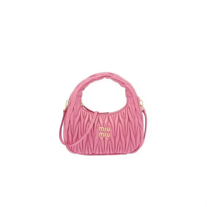 The Miu Wander is re-interpreted each season for a new look and the latest edition is the miniature hobo-shaped bag in leather, as opposed to the regenerated nylon material that was launched in Spring/Summer 2022. Miu Miu’s matelasse quilt, a technique that’s taken the brand years to perfect, is re-designed onto the new Miu Wander from handle to body, creating a three-dimensional pillowy feel.