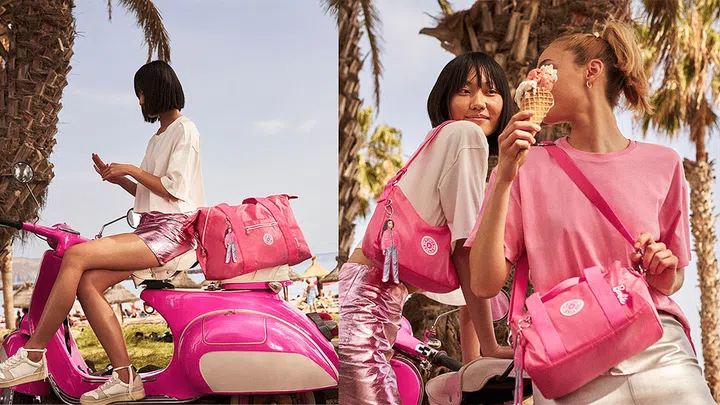 Kipling’s signature crinkle nylon gets a shiny Barbie upgrade in this collection, lacquered with a transparent glaze. Open the bags for a squeal-worthy surprise – the lining features a mix of photorealistic Barbie dolls and Barbie logos.