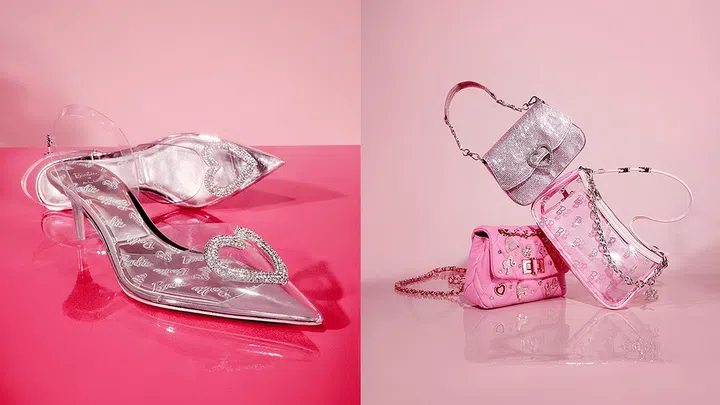 This nine-piece limited-edition assortment is a maximalist’s dream, bringing to life Barbie’s fearless, fun style with a range of women’s footwear and handbags.
