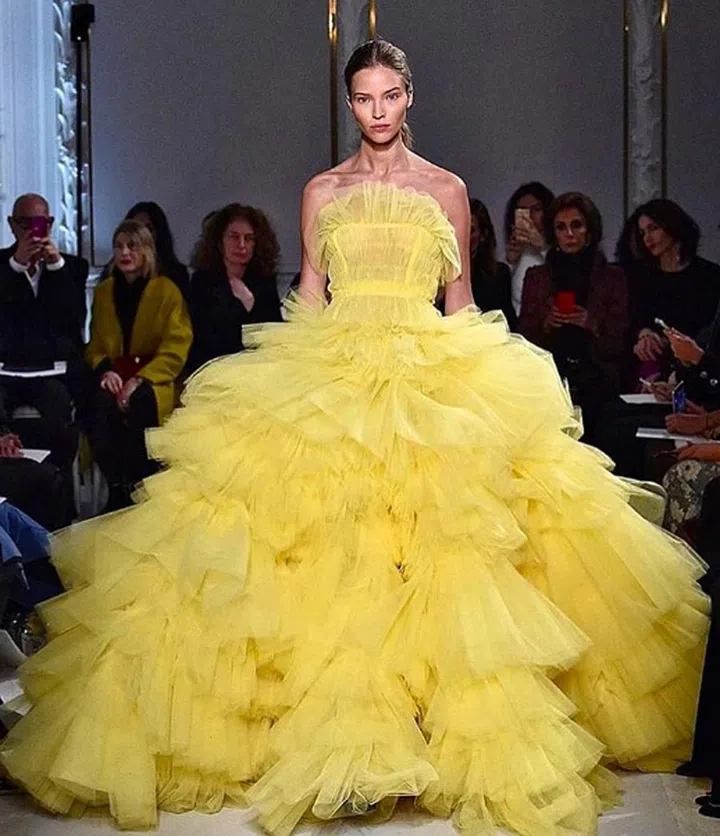 Giambattista Valli's version comes in lots of ruffles that evokes a whimsical, playful charm.