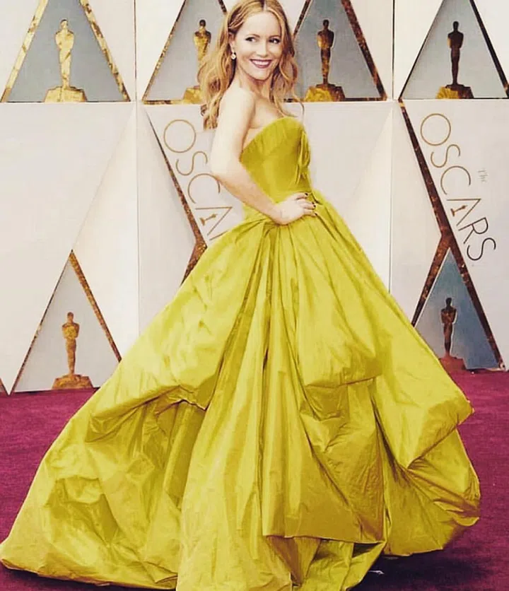 For the Oscars 2017, Leslie Mann went with this lustrous Zac Posen gown in a deep yellow and a poufy skirt.