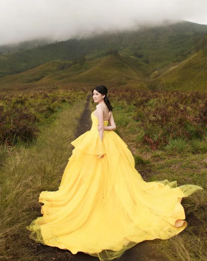Yellow's not a usual go-to for brides, but thanks to Disney's Beauty & The Beast, the spotlight's on this cheery hue.