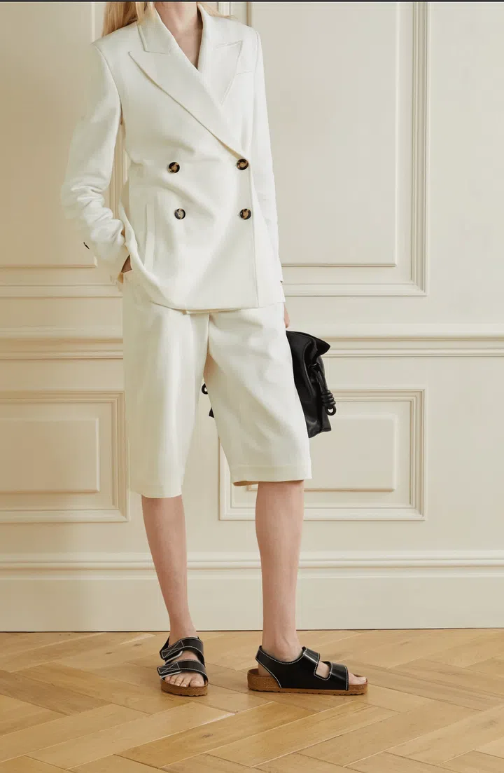 Keep things classy and chic with a tailored white shorts suit. Opt for shorts that feature below-the-knee length to keep your look professional, and a double breasted blazer makes it more corporate.