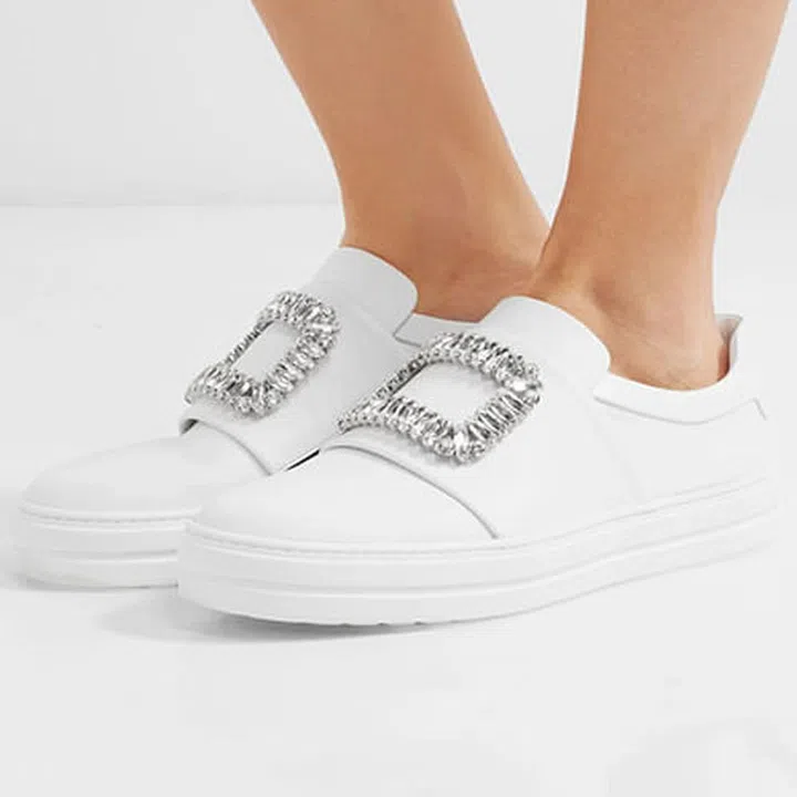 A good pair of white low-top kicks are the footwear equivalent of the Little Black Dress; they're an absolute must-have in every style-conscious woman’s closet. Not only will these Roger Vivier slip-ons make getting through the security line a breeze, you'll also look extra glamorous with that crystal-emblazoned bling.