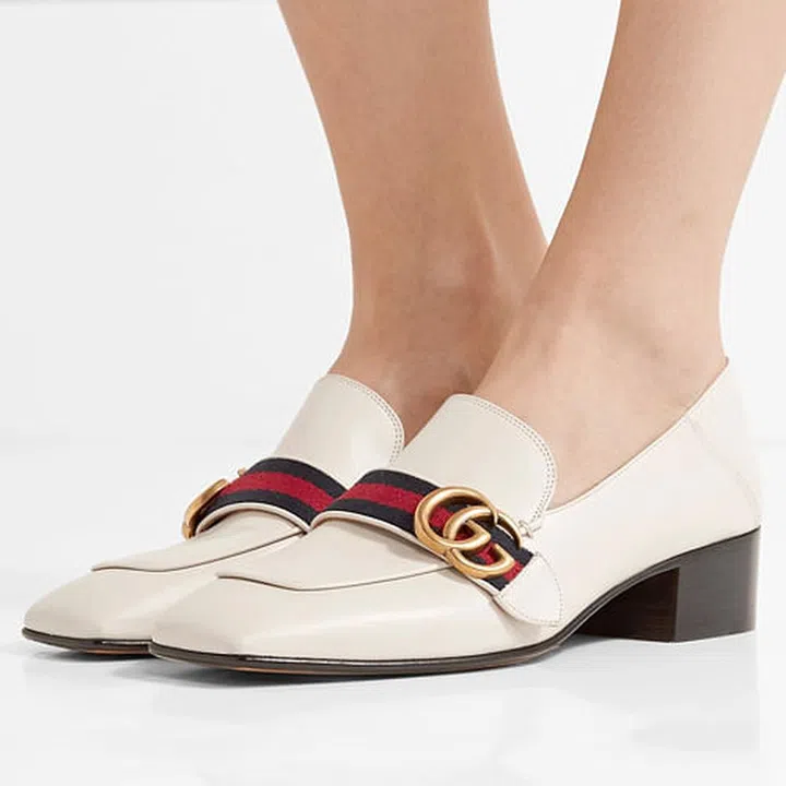 Loafers are sleek and professional, but the best part is, they're really easy to slip on as well. They're basically an upgraded version of slippers. Gucci's version of the loafer pumps are set on a stacked block heel which has a collapsible back which allows you to style them as slippers - rendering it the most perfect plane shoe we've ever seen. For added comfort, wear this with a pair of footie socks.