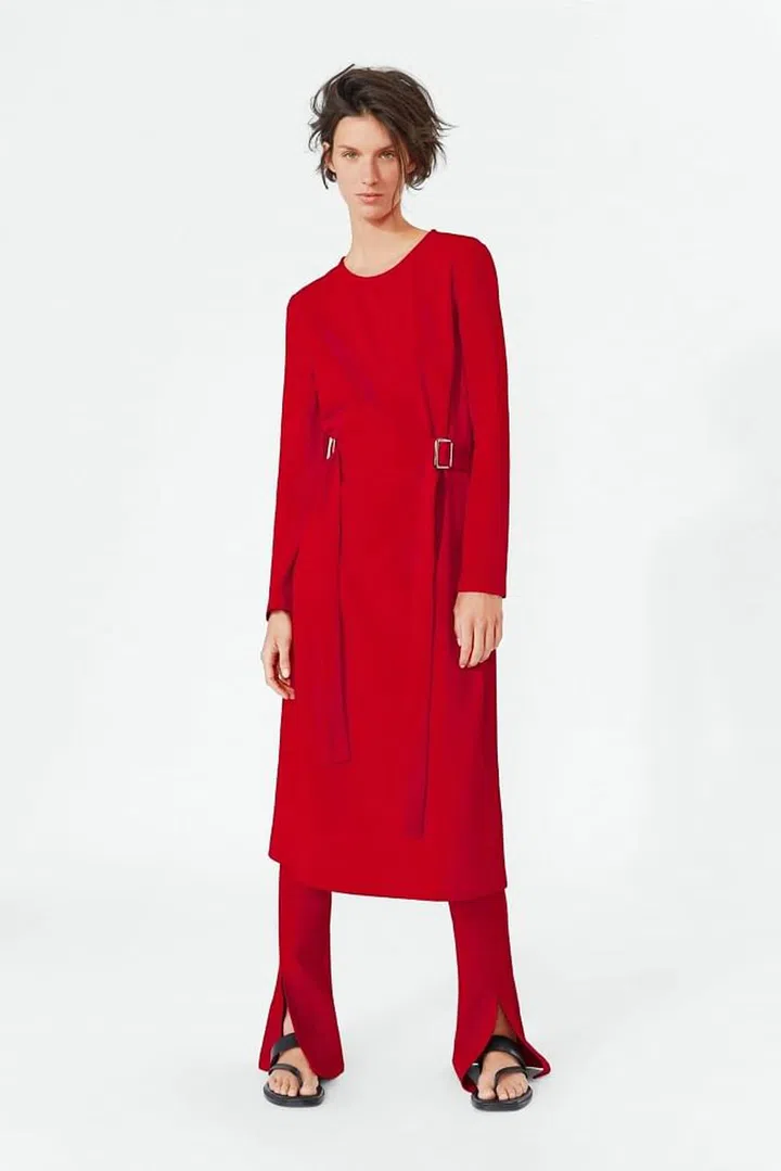 These are the reasons why we simply can't exclude this Zara piece from this edit: 1) this peppy red colour makes for a fantastic pick-me-up coordinate for a dreary work week, 2) HR would wildly approve of this style and 3) it's an easy peasy way to rock the Prefall '19 dress-over-pants trend. Simply layer it over the brand's matching slim leggings with vents or any other slim-cut trousers that already exist in your closet.