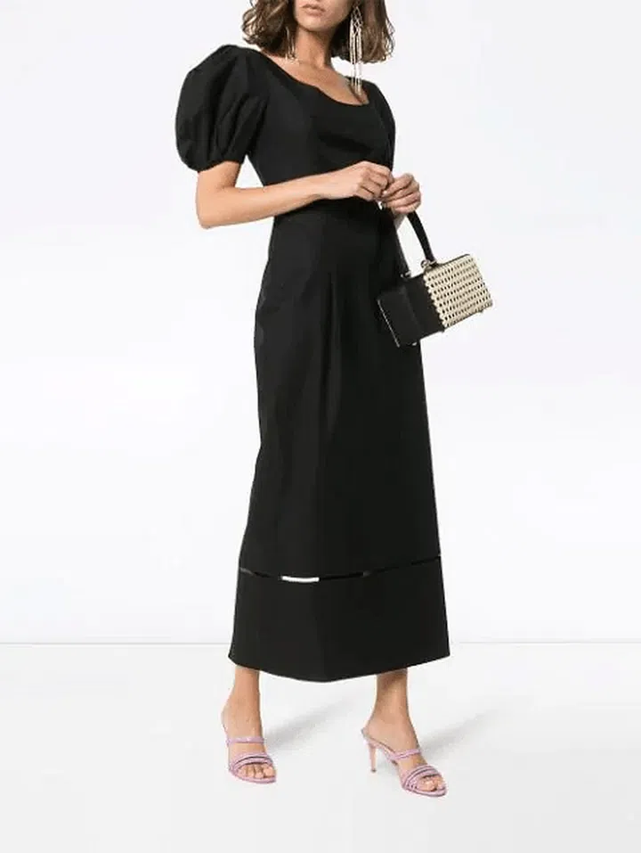 We know how it is when it comes to the quickest and most foolproof wardrobe solution for lazy work days - LBDs are always the way to go, but that just gets boring (and frankly, a little amateur) over time. It's high time to welcome the not-so-little black dress. Starting with this black maxi dress with slightly puffed sleeves from Khaite. The general sensibilities of the LBD still remain, but with an extra element of flair.