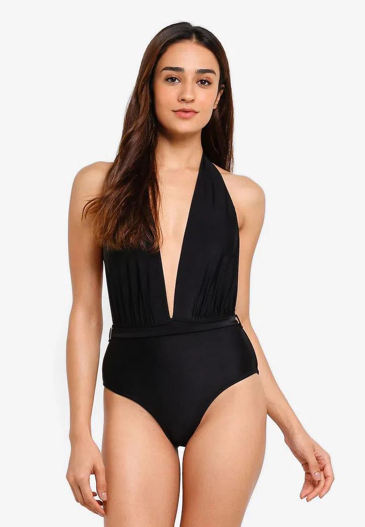 Everybody needs an LBB — little black bikini — in their lives, especially if it comes with a sexy deep v-neckline and a bare back silhouette, like this Miss Selfridge piece.