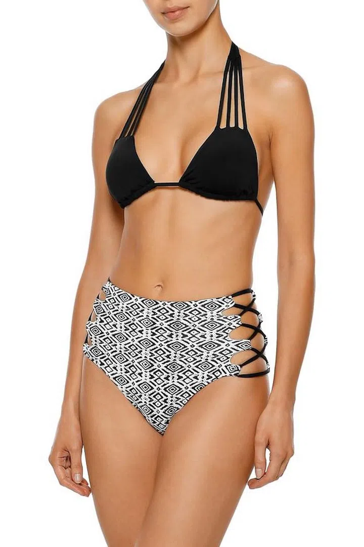 Not only are we loving the geometric tribal-esque print, the strappy design has a bondage aesthetic, without being overtly coquettish or trashy.