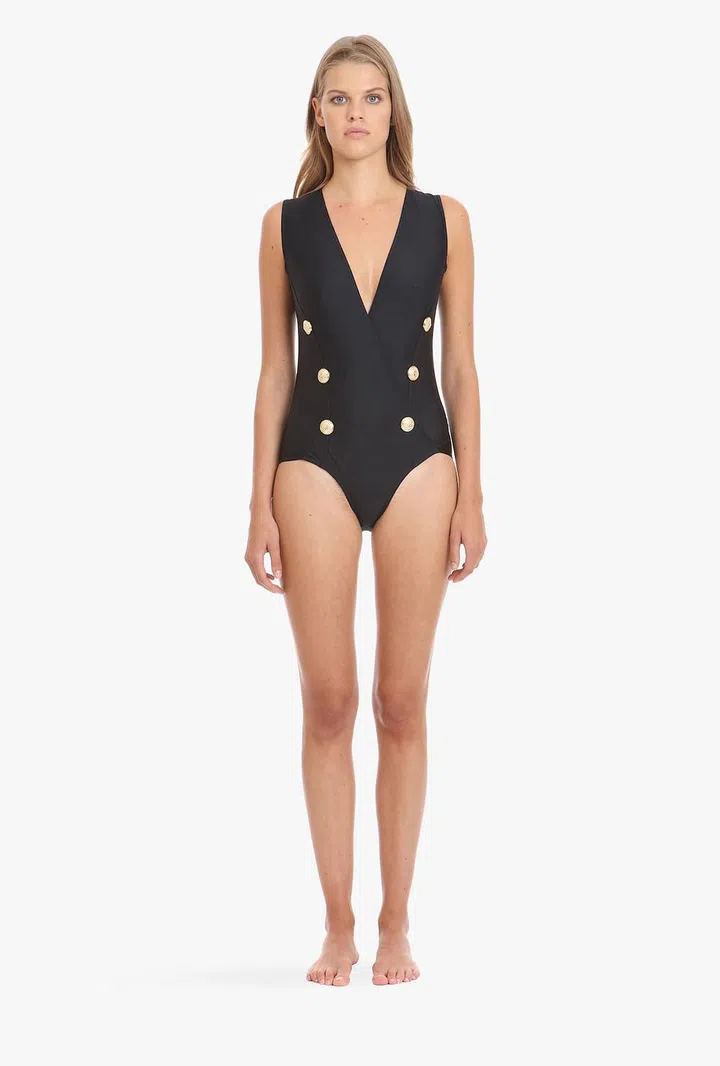 Plunging neckline? Check. Slimming black shade? Check. Gold buttons that give a touch of old money glamour? Check. This chic black Balmain number has everything we want in a swimsuit and screams sophistication.