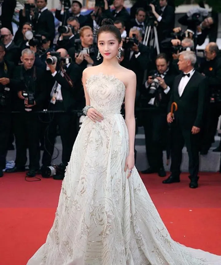 It doesn't get any more bridal than a classic A-line gown with a strapless neckline, but this one on actress Guan Xiaotong's elevated with lavish embroidery and comes in a barely-there green hue.