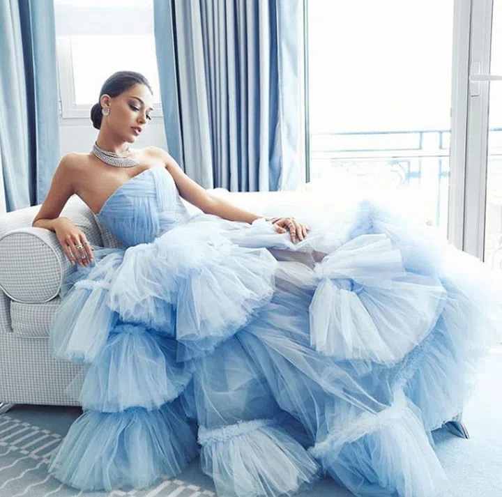 Something blue never looked dreamier. Turkish actress Dilan Çiçek Deniz in Hakaan Yildirim is who you'll want to turn to if your Cinderella moment involves a powder blue hue and plenty of froth.