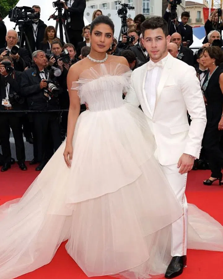 These two aren't letting us forget about their (kind of) newlywed status any time soon. Priyanka Chopra and Nick Jonas oozed wedding vibes in matching all-white outfits, with Priyanka in Georges Hobeika and Nick in a Berluti tux.