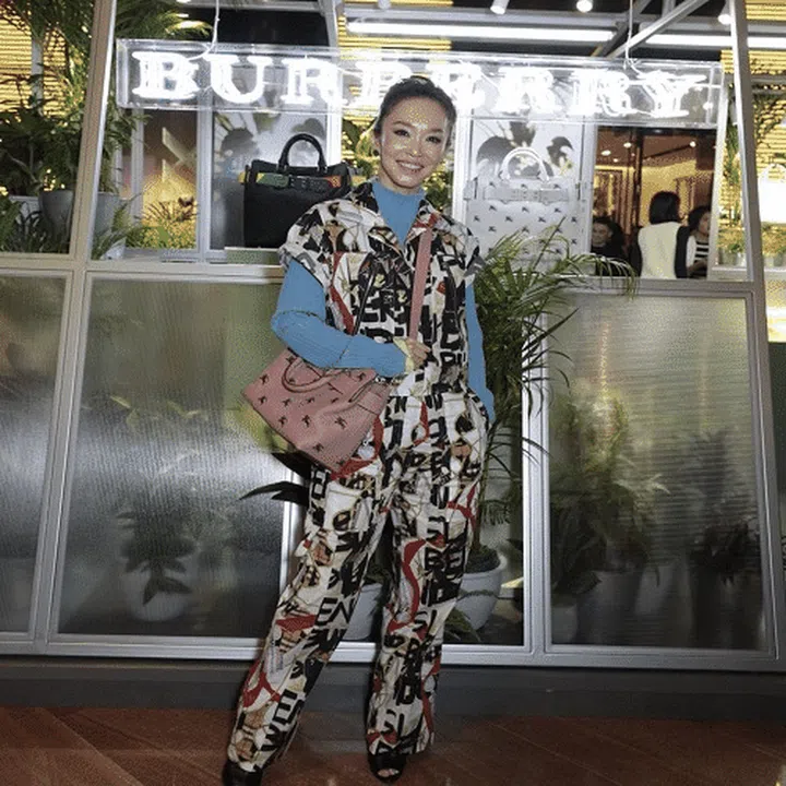 The local singer who was also at the star-studded Burberry event gave us serious summer vibes in her all-white ensemble. She donned a breezy heat-wave friendly white Burberry logo blouse and tucked that into a pair of relaxed white trousers. She topped it all off with the classic Burberry Belt Bag.