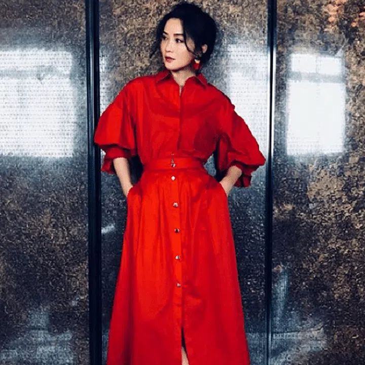 The baby-faced Hong Kong actress stole the sartorial spotlight with this head-turner “in her favourite colour” from Parisian label Maje. She accessorised the bold look with coordinating statement earrings.
