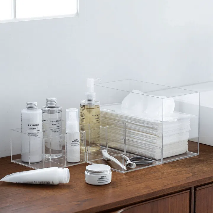 Watch any home organising shows and you'll notice that professional home organisers love these clear acrylic drawer organising trays. These come in various dimensions and can be used in the beauty room, bedroom, kitchen, home office and more.
