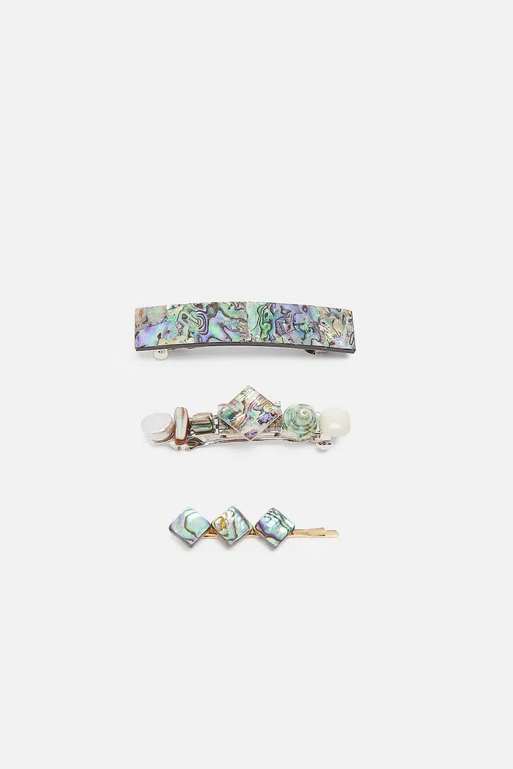 Add a touch of iridescence and shine to your monochromatic outfits by adding these abalone shell hair clips from Zara to your look. The pack comes in three different designs that vary in size, so you can decide to go minimal or go bold, whatever strikes your fancy.